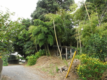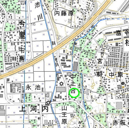 <沿革> 杉久保字中土合に城山と呼ばれる小丘があり、以前は頂部に人工の平坦面と思われる 遺構があったといわれる。しかし、東名高速道路の建設に伴う採土によって城山の大半は 削り取られてしまった。 中土合城山について、『日本城郭大系』では大貫氏との関連を示唆している。大貫氏は 上野国小泉の出とされ、永享十二年(1440)に大貫義兼が結城合戦の恩賞として相模国 愛甲郡に所領を与えられたと伝わる。義兼は、文安元年(1444)に嘉吉の乱での追討軍 不参加を咎められ、所領を没収された。文明六年(1474)になって罪を赦され、同国高座郡 恩馬郷に住んだとされる。 その後大貫氏は中郡戸田郷に移り、後北条氏に仕えたとされる。しかし恩馬郷に残った 一族もいたようで、近世において恩馬郷の有力者とされた恩馬七人衆の1人に数えられて いる。現在も、城山に大貫家の居宅がある。 <手記> 中土合城山は、「九里の土手」と呼ばれる相模川の河岸段丘の最南端付近に位置して います。とはいっても、宅地化や採土によって周辺の地形は大きく改変され、山のようすを うかがい知るのはかなり困難です。 城山の南西の交差点にコンビニがあり、コンビニ自体は平地に均されているのですが、 その裏手に城山の一端が見えます。また、コンビニ東側の生活道路を入っていくと、左手 に大貫家の居宅と城山の痕跡と思われる高まりが続いているのがわかります。 このように、山があったことはなんとか分かるのですが、それ以上の城跡の手がかりを 見つけることは難しい状況といえます。 城山は九里の土手の最南端ですが、その南からまたすぐに次の段丘がはじまります。 つまり、城山の南は2つの段丘の谷間ということになり、ここに東西方向の街道が走って いたことは容易に推測されます。 |