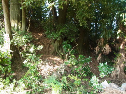 | 主郭南東隅付近の土塁が凹んでいる箇所。 | |