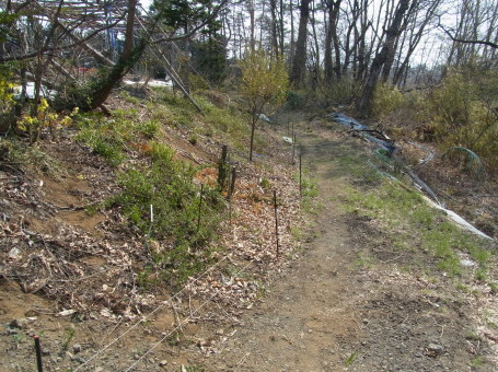 | 烽火台と呼ばれる西側斜面の削平地を望む。 | |