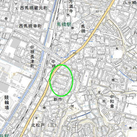 <沿革> 『日本城郭大系』によれば、中根城内に鎮座する妙見社は、南北朝時代の千葉氏当主 千葉貞胤が背負ってきた妙見菩薩像を安置したことに始まるとされる。地元の伝承では、 貞胤は正平三/貞和四年(1348)の四条畷の戦いの後に一旦帰国し、馬橋の小金屋敷 に立ち寄ったが、荒廃して住むにも耐えない状態であった。これを見た付近の農夫が、 松の枝を3本折って重ね、貞胤をもてなした。農夫は後に三枝松の姓を賜り、明治の初め まで三枝松氏が妙見社の祭礼の開扉の役を担ったとされる。ただし、小金屋敷について は一般的に馬橋城の前身とされており、この伝承からは中根城そのものがすでに存在 したか否かはわからない。 中根城址南東の字新作にある安房須神社の縁起によれば、中根城は小金城の出城 として高城氏によって築かれたもので、新作は城兵が平時に農業を営んだ根小屋集落 であるとしている。城主は不明だが、天正十八年(1590)の小田原の役で高城氏が没落 すると、城兵はそのまま新作に土着したとされる。 <手記> 中根城は、南から細長く緩やかに伸びる台地の先端にあり、西側は江戸川および坂川 の氾濫原、北には馬橋の地名の由来となった橋の架かる中津川が流れています。 城内に位置するとされる妙見社は残っていますが、周辺はすっかり宅地化されており、 遺構らしきものは見当たりません。神社の南に殿山公園があるので、おそらくこのあたり までが城域だったものと推測されます。 殿山公園の南東に鎮座する安房須神社門前の縁起説明板には、上述の通り中根城に ついての記述があり、現地で唯一の城跡を示すものといえます。その内容を読むと、一見 神社境内が城跡であるかのように思えます。神社周辺は東側の谷戸に突き出た小ピーク となっており、ここが城跡と言われればそのように感じられる地形ではあります。実際に、 資料やサイトによっては神社境内を中根城址としているものもあるようです。 ただ、よくよく読むと縁起説明板には城がどこにあったかについては明示されておらず、 『大系』では「西側の低地」に面して「四郭が南北に並んで」いたと明記されていることから、 やはり城域は先述の妙見社周辺ということになるだろうと思われます。旧地形図と照らし 合わせると、妙見神社を北端とするとても細長い尾根があったようで、これを縦に四つ切り にしたのが中根城の実態だったものと考えられます。この細尾根の東には、小谷を挟んで もうひとつ同様に細長い尾根があり、その東麓が狭義の新作集落となります。 |
