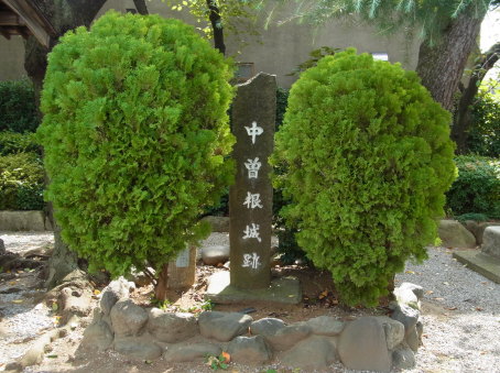 <沿革> 『新編武蔵国風土記稿』に、「千葉某」の城跡とある。『日本城郭大系』には寛正年間(1460〜66) の築城とされているが、論拠は不明である。また、現地の説明では千葉勝胤の築城と書かれている が、勝胤は文明三年(1471)の生まれなので、『大系』の記述と合わない。 勝胤は、享徳三年(1455)にはじまる享徳の乱における千葉氏の分裂後の、いわゆる下総千葉氏 の当主で、その居城は本佐倉城である。他方の千葉実胤・自胤兄弟にはじまる武蔵千葉氏は、太田 道灌を頼って石浜城を居城とした。中曽根城は武蔵千葉氏の城と考える方が自然なように思われる。 永禄二年(1559)にまとめられた北条氏の『小田原衆所領役帳』によれば、中曽根周辺に「千葉殿」 が役高を有していたとある。当時の下総千葉氏は北条氏と良好な関係にあったものの、まだ家臣化 はしていなかった。したがって、この「千葉殿」は武蔵千葉氏に連なる人物と推測される。 <手記> 『記稿』に城跡とある妙見社は昭和初期に興野の雷社と合祀され、今は中曽根神社となっています。 神社境内が城の一隅にあたるとされ、説明碑や城址碑があります。妙見菩薩は、千葉氏の守護神と されています。 『記稿』によれば、中曽根城は六町四方の規模をもち、周囲を土居や堀に囲まれていたとあります。 現在では遺構は残っていません。 |