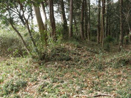 <沿革> 天正年間(1573〜92)、原田縫殿によって築かれたとされる。原田は芹沢城と玉造城のちょうど ちょうど中間付近にある。原田氏は芹沢氏と玉造氏のどちらかに関係しているものと推測されるが、 詳細は不明である。 <手記> 原田古館は、梶無川の谷戸に突き出た細い丘陵の先端に位置しています。現在、城跡は個人宅 となっているため、勝手に歩き回るわけには行きません。 道路脇にわずかながら土塁が残っており、貴重な遺構となっております。 |