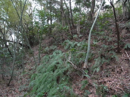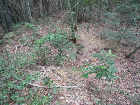 | 土塁線状の細尾根と途中の切れ目。 | |
