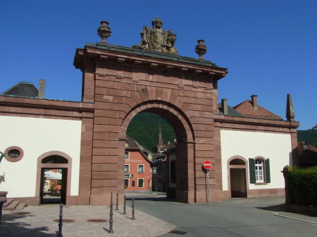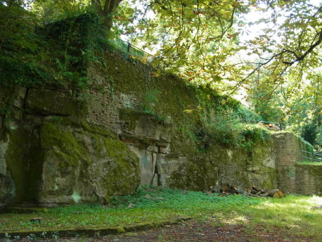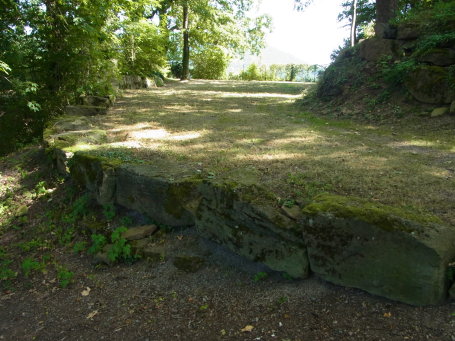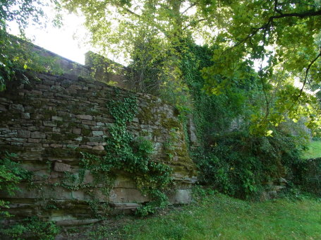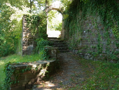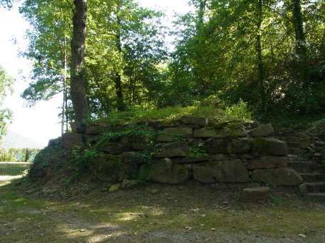 <沿革> 13世紀前半ごろに、ホーエンシュタウフェン朝によって神聖ローマ帝国の城(ライヒスブルク) として築かれたと推測されているが、確証はない。1292年、神聖ローマ皇帝ルドルフ1世の子 アルブレヒト・フォン・ハプスブルクが、ライン宮中伯ルートヴィヒ2世に対し、きたる皇帝選挙で 自分を支持すればライヒェンシュタイン城を譲渡する旨のお墨付きを与えた。これが、ライヒェン シュタイン城が史料上に現れる初出である。ちなみに、この選挙でルートヴィヒ2世はたしかに アルブレヒトを推したが、敗れてナッサウ伯アドルフが即位した。アドルフの死後、アルブレヒト が皇帝アルブレヒト1世として即位したが、城は帝国所有のままであった。 1329年、皇帝ルートヴィヒ4世(ルートヴィヒ2世の次男)は、ライヒェンシュタイン城とその麓の ネッカーゲミュントの町を甥のライン宮中伯ルドルフ2世に抵当に入れた。ルドルフ2世の弟の ルプレヒト1世の代に、ライン宮中伯はプファルツ選帝侯となり、城と町は選帝侯領となった。 ネッカーゲミュントの町はその後も栄えたが、ライヒェンシュタイン城は1355年を最後に史料上 からは姿を消した。戦略上の意義を失い、14世紀中に廃城になったものと考えられている。 <手記> ライヒェンシュタイン城は、ネッカー川とその支流エルゼンツ川の合流点を見下ろす、小高い 半独立丘上にあります。城山とネッカー川の間に、ネッカーゲミュントの旧市街があります。 エルゼンツ川は、ネッカー川の支脈のなかでは比較的大きな方で、ライヒェンシュタイン城は ネッカー川流域だけでなく、エルゼンツ川の谷戸も押さえる目的で築かれたものと推測され ます。 現在、城跡一帯は町の公園となっています。かなり古い時代に放棄された城ということも あって、遺構としては城壁の基部石積みくらいしか残っていません。上の写真にある主郭の 門跡が、唯一の建造物遺構と思われます。 南北に細長い丘であることもあって、ライヒェンシュタイン城は梯郭式に4つほどの曲輪を 並べた縄張りとなっています。第3郭くらいまでは、石塁も残っていてはっきりとみてとれるの ですが、その先は住宅街との境になっていて、どこまでが城域か判然としません。いずれに せよ、多数の曲輪からなる縄張りであったことは間違いなさそうで、ヨーロッパのなかでは 比較的日本の城と似た構造をもつものであったと思われます。 ちなみに、ネッカーゲミュントはドイツ有数の観光地であるハイデルベルクから電車で10分 程度のところにありながら、ネッカー渓谷ののどかな風景と歴史ある旧市街をもつ町です。 アルトシュタット駅から徒歩10分圏内に見どころが集中していて、ハイデルベルクのにぎやか さからちょっと足をのばした、穴場の観光地としておすすめです。 |