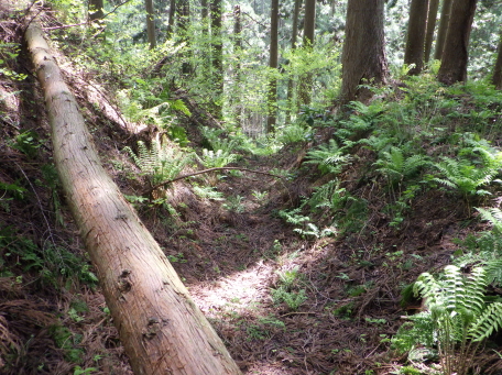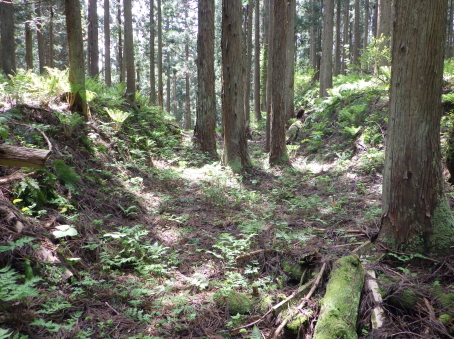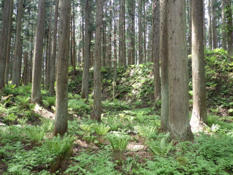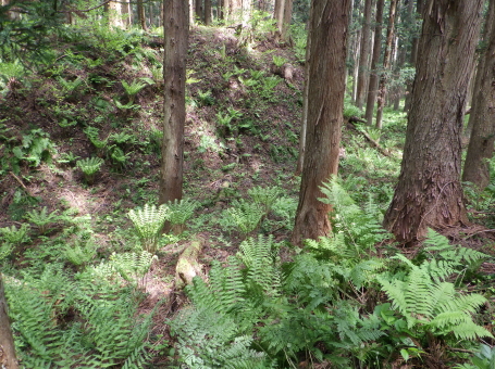 <沿革> 雄勝郡へ下向して稲庭城を築いた小野寺経道は、次男・道直を西馬音内に、三男・道定を 湯沢に配した。道直の入植は健治三年(1277)とされるが、山城がいつごろ築かれたのかは 定かでない。道直の子孫は西馬音内氏を称した。 文禄元年(1592)、由利十二頭の一人・矢島満安が仁賀保氏ら他の十二頭に攻め込まれ、 敗れて舅の西馬音内茂道を頼った。茂道は本家の小野寺景道(輝道)の庶子で、西馬音内 昵道の養子となったものとみられる。ただし、満安は永禄三年(1560)に幼年で家督を継いだ とされ、景道の跡を継いだ茂道の兄・義道が同九年(1566)の生まれであることから、満安を 茂道の女婿とするのは疑問が残る。 翌文禄二年(1593)、茂道は義道から謀反の疑いをかけられ、軍兵を差し向けられた。自身 が嫌疑の原因と考えた満安は、潔白を訴えるために西馬音内城内で自害した。しかし、茂道 は城を逐われ、最上義光を頼ったとされる。 慶長三年(1598)、茂道は最上氏に奪われていた小野寺氏の新田目・植田・角間・鍋倉の 諸城を奇襲して奪還し、その功を以て西馬音内城主に復帰した。同五年(1600)の関ヶ原の 戦いにおける茂道および西馬音内城の動向は明らかでない。翌六年(1601)に小野寺氏が 改易されると、西馬音内城も廃城となったと推測される。日本三大盆踊りの一つに数えられる 西馬音内の盆踊は、同年に茂道が義光に攻め滅ぼされたことを悼んで、家臣や領民が慰霊 のための亡者踊りを始めたのが由来といわれる。 <手記> 西馬音内城は、西馬音内川が平野部へ出る喉口部の丘陵地帯の一峰に築かれています。 北東麓の旧元西小学校付近が大手とされ、学校跡に駐車可能で、そこから登城路が延びて います。登り始めてまもなく、十三森塚という雄勝地域で散見される13基の小塚がありますが、 用途については諸説あり判然としないようです。さらに進むと尾根筋を断ち切る大きな堀切が あり、そこからが城域となります。 城域はとても広大で、各曲輪も広くしっかりと削平され、また切岸も高くしっかりしています。 他方で規模の大きさに比して堀や虎口など防備上の工夫はほとんど見られず、防衛面には あまり労力が割かれていない印象です。谷筋の削平地には矢島満安自刃の地と伝えられる 場所があり、おそらく根古屋も包摂した屋敷群で構成される城館だったのでしょう。 城内は植樹林で見通しもよく、遺構の残存状況も良好で、訪れ甲斐のある山城です。 |