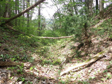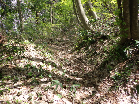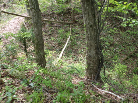 同曲輪から堀切越しに本丸切岸を望む。 | |