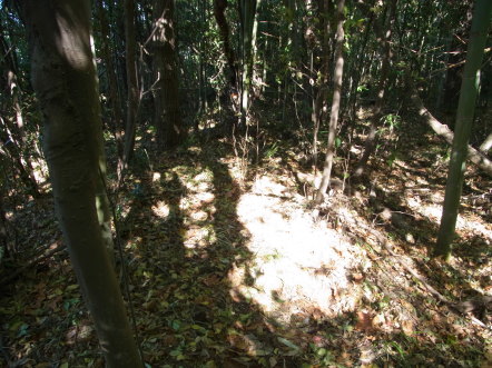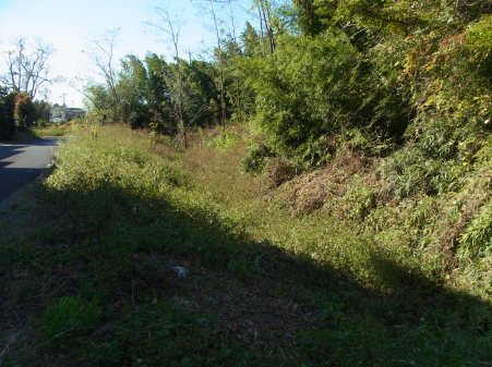 <沿革> 「古城」や「城窪」といった字が残り、『中世城館調査報告書集成』所収の縄張り図に したがえば、近年まで方形の城館跡やその外郭の堀および土塁が残っていた。また、 西荻窪から城窪の沢谷戸を挟んだ西側には、塔の堀と呼ばれる南北1q弱の堀と土塁 があった。 西荻窪城に関して史料などはみつかっていないが、南東すぐのところの荻窪城主と 伝わる赤荻氏との関連が考えられる。 <手記> 西荻窪城は、西側に小川が流れる崖端に築かれた城です。この名もなき小川の形成 する谷戸には今も田が並んでいて、この谷戸を押さえるための城館であることは明らか です。字古城にある民家の北および西側裏手に、土塁や堀跡と思われる箇所が見受け られます。『集成』の縄張り図には、字古城の南200mほどのところにも外郭と思われる 堀が記されていますが、残念ながら今日では失われてしまっているようです。 塔の堀は、西荻窪城から谷戸を挟んだ西側の丘陵上にあります。西荻窪城の西3q ほどのところに同様の時沢遠堀があり、塔の堀も「遠堀」の転訛と推測されます。この 南北に延々と空堀(部分的に土塁も伴っている)が続くというのは、私が知る限り極めて 珍しい遺構であり、大胡氏ないし少なくとも大胡地方に独特の防衛思想に基づく施設で あると考えられます。 時沢遠堀が、基本的には沢や谷戸(『集成』の表現では「雨裂」)といった自然地形を 用いているのに対し、塔の堀は南に伸びる舌状台地の上面に南北方向に空堀を掘って いて、より謎の深い遺構です。単に西荻窪城の付属施設というなら、そもそも沢谷戸を 天然の堀とすれば良いわけで、わざわざ丘の上に長々と堀を設ける必要はありません。 是が非でもこの生産性の高い谷戸を守りたいという意思の現れとも読み取れますが、 1q弱にもわたって堀を掘るに足る理由かどうかはなんともいえず、本当に謎の遺構と しかいいようがありません。 |