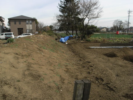 | 説明板から平林寺方面へと延びる土塁。 | |