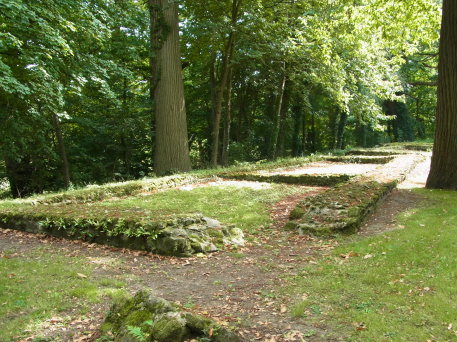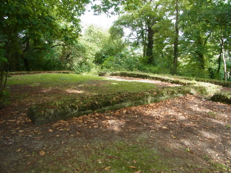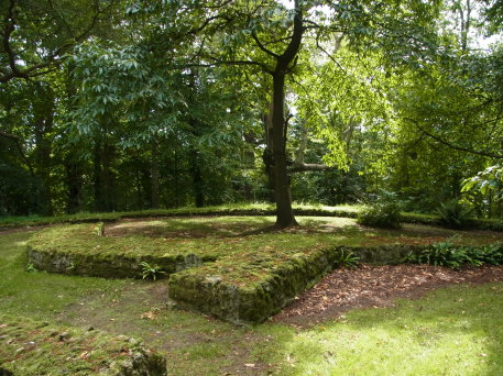 <沿革> 11世紀前半にノルマン人の砦として築かれたものと推測されている。10世紀末ごろから ノルマン人のデンマーク王スヴェン1世がイングランドへ侵攻するようになり、イングランド王 エゼルレッド2世(無策王)父子が1016年に相次いで亡くなると、スヴェン1世の子クヌートは イングランド王位を継いで(クヌート1世)北海帝国を築いた。 クヌート1世の死後は、子のハーデクヌートが跡を継いだが、摂政としてイングランドを統治 させていた異母兄のハロルドが1037年にイングランド王を自称したため、ハーデクヌートは デンマークからハロルド討伐の準備にかかった。イングランド出陣前の1040年にハロルドは 急逝し、ハーデクヌートがイングランド王に就いた。ハーデクヌートも1042年に若くして急死し、 後をエドワード懺悔王が継いだ。エドワードはエゼルレッド2世とノルマンディー公エマの子で、 同じくエマを母にもつハーデクヌートの異父兄にあたる。これによりイングランド王はノルマン 系から再びサクソン系に戻ることとなった。したがって、ノルマン城がノルマン人の砦である とするならば、1042年までに築かれたものと推測するのが妥当だと思われる。 12世紀初頭、ノルマンディー出身のサヴァリック・フィッツカナがイングランド国王ヘンリー 1世からミッドハーストの町を与えられた。サヴァリックがノルマン城を利用したか否かは不明 である。サヴァリックの孫のフランクは、12世紀末にノルマンディーへ拠点を戻した。そして、 1284年にジョン・ド・ブーンが、ノルマン城のあるアンの丘の麓にカウドレイ館を築いて移り 住んだ。ド・ブーン家は、13世紀前半にラルフ・ド・ブーンがサヴァリック・フィッツジェフリーと 結婚したことでミッドハーストの領主となったものと推測されるが、詳しい経緯は不明である。 いずれにせよ、遅くともこの時点までには、ノルマン城は廃城となったものと考えられる。 <手記> ノルマン城はミッドハーストの町の東、通称「アンの丘」にあったとされています。ラサー川 を挟んだ対岸の平地には、カウドレイ館が建っています。丘の南側にはラサー川の支脈と サウス池があり、周辺では比較的要害性の高いところといえます。ただ、丘自体は緩やか そのものなので、登るのに大した苦労はありません。 ノルマン城は、1913年に初めて遺跡として発見・発掘された城跡です。現在は、そのとき の発掘結果をもとに地表復元された石列のみが城跡のようすを語っています。それによると、 ノルマン城は楕円形の単郭の城で、建物は東辺に集中していたようです。東辺の建物群は、 それぞれ北から台所、ホール、礼拝堂、主塔と続いていたと考えられています。塔の高さは 不明ですが、ホールについては地上2階、地下1階程度の規模であったと推測されています。 ただし、1994年に部分的な再調査が行われた結果、1913年の調査結果については一部 疑問が呈されているようです(建物の規模や使用年代など)。さらに、単郭とされてきた主郭 の城壁の外側にも城域が広がっていた可能性も示唆されています。 このように、中世城郭ファンとしては新たな発見が非常に楽しみな城跡ですので、今後の 継続的な調査を期待したいところです。ちなみに、表題の写真は台所跡の地表復元部です。 |
