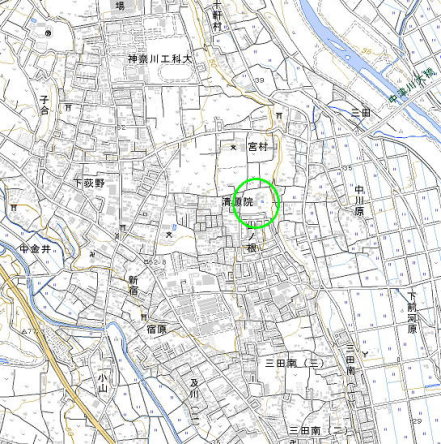 <沿革> 永正九年(1512)に北条早雲(伊勢宗瑞)が岡崎城を攻め落とした際、恩賞として越智 弾正忠が三田郷を与えられた。『日本城郭大系』では、弾正忠の館を清源院周辺に比定 しているが、確証はない。同院の寺伝によれば、天文二十一年(1552)に伽藍が全焼し、 越智出雲守が復興した。出雲守について、弾正忠に連なる人物とも考えられるが、確証 はない。 越智氏については、中津川対岸の依知郷に出自をもつとみられている。『新編武蔵国 風土記稿』には、依知郷の住人として依知小太郎某の名があり、妙伝寺の寺伝などでは 越智三郎左衛門直重の名がみられる。『上依知村誌略』では、依知(越智)直重を依知 一帯の領主であった本間氏の一族としているが、確証はない。 三田郷は古くは「散田」と書き、源頼朝の側近安達盛長の所領であった。あるいは盛長 の屋敷も付近に構えられていた可能性も考えられる。盛長の墓は、同市飯山の金剛寺に あるとされる。 清源院の寺伝によれば、同院の開基は伊東祐親とされているが、祐親は伊豆の豪族 であり、三田郷との間にどのような関係があったのかは不明である。 <手記> 館跡に比定される清源院は、中津川の河岸上に建つほぼ方形の寺です。崖端の城館 とみれば、武士の居館として十分ありうべき地形であるといえます。ただし、伝承もなく、 とりたてて目立った遺構もないので、確信を抱くまでには至りません。 一応、寺の西辺はわずかながら段差となっており、館の縁線を踏襲したものといえなく もないようには感じられます。 眼下の中津川氾濫原には、今も水をたたえた田が数多く営まれており、この地を治める のには、好地であるとはいえると思われます。 |