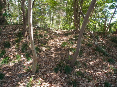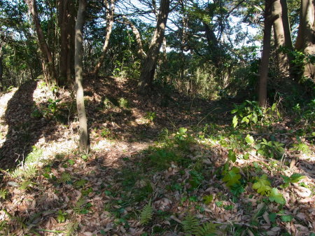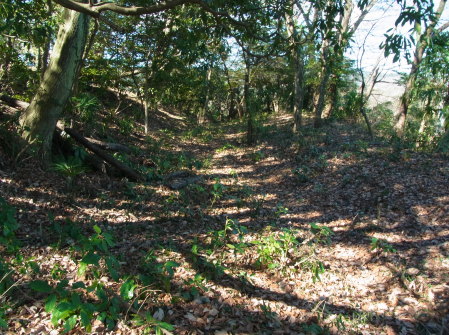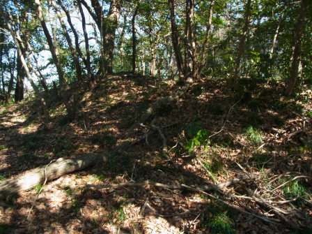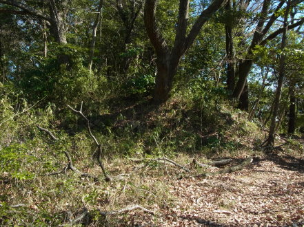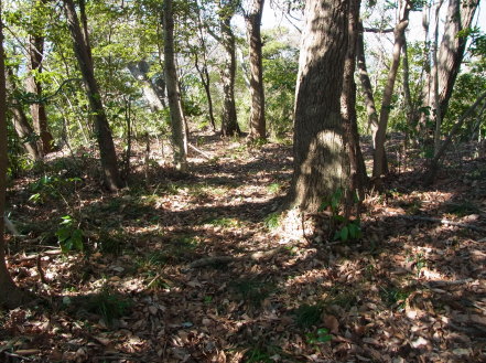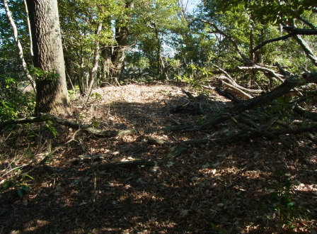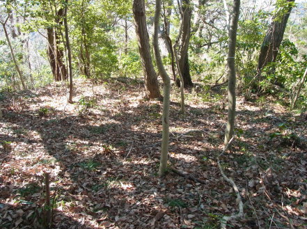 <沿革> 小田原城の支砦であるが、いつごろ誰によって築かれたかは定かでない。天正十八年 (1590)の小田原の役に際し、豊臣勢の細川忠興が攻め取り、自軍の陣所とした。同年 中に小田原城が落城すると、板橋城もそのまま廃城となったものと推測される。 <手記> 板橋城は、小田原城のある丘陵とは峰続きの、早川沿いに突き出た小丘上に築かれて います。電車で直接行く場合は、東の箱根板橋駅よりも西麓の風祭駅の方が最寄りです。 いずれも登城口は南西隅の虎口で、風祭駅側からはその少し下方にある鉄塔を目指して 行けば大丈夫です。 板橋城は、山頂の主郭から南西隅の虎口まで、雛壇状に4つの曲輪が並んでいます。 途中、土塁基壇に2ヶ所ほど石積みの跡が見られました。雛壇状遺構とは反対側の主郭 東側下には浅間神社があり、こちらも曲輪跡を思われます。その下には畑地があり、その 先は住宅街となっています。こちらの東側尾根先がとても緩やかで最大の弱点と思われ、 おそらくそれなりの造作があったものと推測されますが、今では確かめようがありません。 主郭および浅間神社の北側には、東西方向に大きな横堀が穿たれています。城全体は 南西方向に伸びていて、小田原城防衛を目的とする北条氏の縄張りと考えられますが、 この堀については、あるいは細川氏が新たに設けたものと見ることもできるでしょう。 板橋城からは、小田原城最西端の御鐘之台が指呼の間で、私も尾根伝いに御鐘之台 へと歩いたのですが、途中の道路は細く曲がって歩道もないうえに交通量がそこそこある ので、通行の際は十分ご注意ください。 |