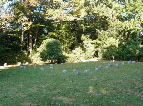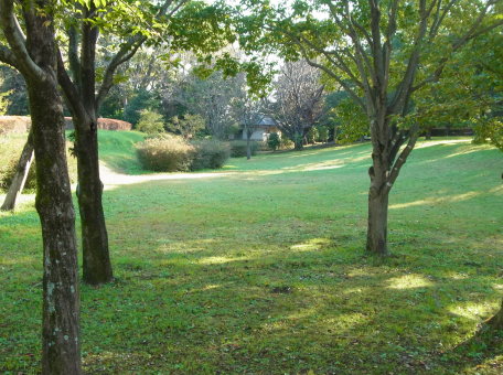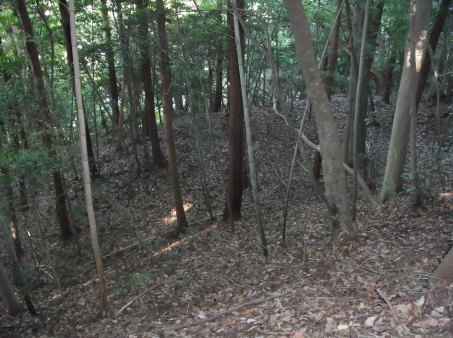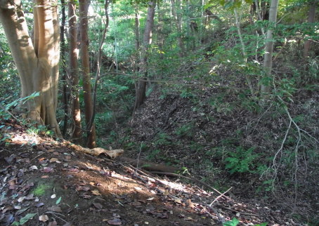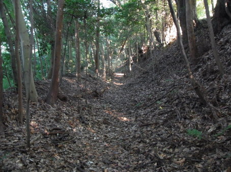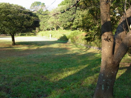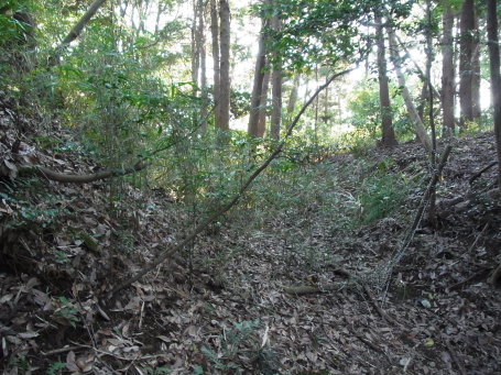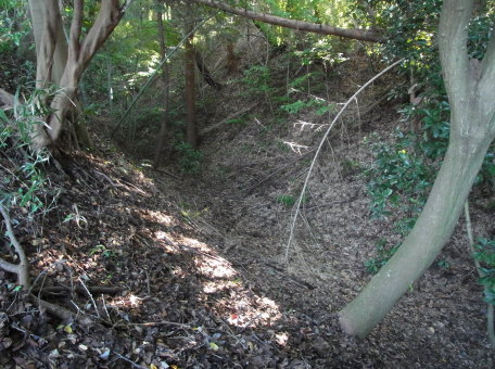 <沿革> 伝承では、大庭景親またはその父景宗(景忠)によって築かれたとされる。ただし、文献や発掘 調査では証拠を得られていない。大庭氏は鎌倉平氏流であるが、その系譜には諸説あり定かで ない。治承四年(1180)に源頼朝が挙兵すると、景親は関東の平氏方の中核を成したが、富士川 の戦いで平維盛が敗れると降伏し、斬首された。景親の兄景義は挙兵時から頼朝に従っていた ため、鎌倉幕府が成立すると有力御家人となったが、子の景兼の代に和田合戦に巻き込まれて 没落した。 戦国時代に入り、扇谷上杉氏家宰太田道灌によって、大庭城が取り立てられたとされる。今に 見る大庭城の遺構は、早くともこのとき以降のものと考えられる。 永正九年(1512)、北条早雲(伊勢宗瑞)が岡崎城を攻め落とし、同年に鎌倉に入ったが、この 間に大庭城も早雲によって落とされたとみられている。このとき、早雲は引地川の泥湿地に囲ま れた大庭城を攻めあぐね、土地の老婆から川の堰を切れば水は干上がることを聞き出したが、 口封じに老婆を殺し、供養のために舟に乗せた地蔵を建てたとする「舟地蔵」伝説が残っている。 その後の大庭城については史料に現れず、詳細は不明である。遅くとも、北条氏が三浦氏や 扇谷上杉氏を滅ぼしたころには、戦略的価値を失っていたものと推測される。 <手記> 大庭城は、引地川と小糸川に挟まれた典型的な三角形の舌状台地に築かれた城です。連郭 式に4つの曲輪が並んでいますが、四の郭の半分以北は住宅地としてがっつり削られています。 住宅地側から主城域側の法面を見ると、「こんなに崩したんか」と驚くほどです。 主城域は大庭城址公園となっていて、とくに三の郭と四の郭はかなり均された芝生の公園と なっていますが、それでもその境の堀跡が段差としてしっかり確認できます。 もっとも大きな見どころの1つが二の郭の堀で、深々としたようすにクランクまでしっかり残って いて見ごたえがあります。当の二の郭の方は、お花の広場となっていますが、三の郭側に土塁 が認められます。 主郭には、発掘調査で検出された掘立柱建物の柱穴が地表復元されています。主郭の先端 には堀切が1条、また西側面には立派な横堀があり、これまた見ごたえのある遺構です。横堀 の下にも帯曲輪があるのが認められます。東側斜面にも曲輪群があるようなのですが、こちら は藪と民家の敷地に阻まれて視認することはできませんでした。 公園の北には、裏門公園や二番構公園、駒寄坂など城郭関連地名を冠した施設などが散見 されるのですが、いずれも城跡らしさを感じさせるものではありませんでした。 大庭城には、前身となる大庭氏や三浦氏の館があったとされていますが、私はそれには懐疑 的な立場です。選地が鎌倉時代の城館のトレンドとは異なっていますし、逆に舌状台地の先端 の連郭式城郭というのは、太田道灌が好みのように思われます。かなり規模は大きな城ですが、 やはり後北条氏にとってはそれほど戦略的価値が高いとは感じられません。北条氏が奪取した 後は、かなり早い段階で廃城になったのではないかと、個人的には考えています。 |