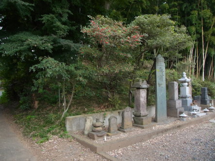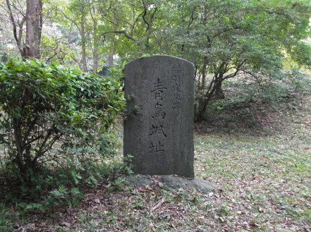 | 青鳥城跡板石塔婆と二の郭の土塁。 | |