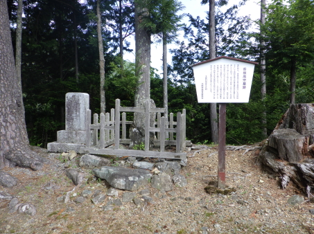 <沿革> 南北朝時代に宗良親王を迎えた南朝の忠臣・香坂高宗の居城とされる。香坂氏といえば、 滋野氏の一族で上水内郡に勢力をもち、同時期に南朝方として活動した香坂心覚がいるが、 高宗と関係があるのかは定かでない。香坂氏がいつごろどのような経緯で大河原に居住し、 城を築いたのかも不明である。 康永二/興国四年(1343)の末、高宗は小渋川のさらに上流奥地に宗良親王の御座所を 造営し、大河原は信州のみならず周辺各国の南朝方の中心地として機能した。南朝の劣勢 が続くなか、応安二/正平二十四(1369)には関東管領兼信濃守護の上杉朝房が大河原へ 攻め寄せたが、親王および高宗はこれを撃退している。 応安七/文中三年(1374)、宗良親王はついに大河原を去って吉野へと上った。しかし、 その後も大河原を訪れた記録がみられ、一説には至徳二/元中二年(1385)に大河原から 諏訪へ向かう途上、三峰川沿いの長谷で薨去したとされる。終生親王を守ってきた高宗は、 南北朝合一後の応永十四年(1407)に大河原城で没したと伝わる。 その後の大河原香坂氏および大河原城については詳らかでない。 <手記> 大河原城は、大鹿村を構成する2つの地域(「大」河原と「鹿」塩)のうち、大河原の中心部 から小渋川をさらに分け入った上蔵(わぞ)という集落にあります。福徳寺に車を止めて東へ 少し歩くと交差点に標柱があり、住居の間を南下すると城跡に辿り着きます。 小渋川に臨む崖端の館城だったとみられますが、今日では大部分が崩落し、空堀と曲輪 のごく一部が残るのみです。物見台程度にまで削られた曲輪跡には石碑と説明板が建ち、 そこには天文二十三年(1554)に山本勘助が攻め落としたとありますが、軍師・山本勘助の 実在性も含めて、事実とは思えません。 福徳寺から北西へ上がると、香坂高宗の墓跡があります。また福徳寺自体も、解体調査の 結果、室町時代前期の築と推定され、天台座主であった宗良親王によって建立されたものと 考えられています。ちなみに、宗良親王の御座所があった御所平への山道は、落石等により 通行止めとなっていました。 |