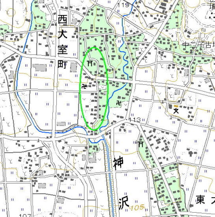 <沿革> 12世紀末ごろまで大室氏がいたとされるが、そのころすでに城館が営まれていたかは不明 である。 史料に現れるのは、戦国時代に入り、白井長尾氏家臣牧氏の居城としてである。長尾憲景 の次男政景(上杉景勝の父の上田長尾政景とは別人。後に景広と改名)は後北条氏の人質 となっていたが、北条氏の意向により利根川以東の長尾氏領を分知されることになった。 しかし、白井長尾氏当主の兄輝景や大室城主牧和泉守・同弾正はこれを承知しなかった。 天正十一年(1583)、北条氏の後ろ盾を得た政景は牧氏を攻め滅ぼして城と領土を奪った。 その後、政景は大室城に居城したと思われるが、詳細は不明である。同十八年(1590)の 小田原の役で白井長尾氏は所領を失い、後に越後上杉氏を頼った。 慶長六年(1601)、酒井重忠が前橋藩主となると、酒井氏家臣の石川氏が大室城を管理 することになった。それまでは、重忠の前の前橋城主であった平岩親吉が大室城を預かって いたものと推測されるが、確証はない。寛延二年(1749)に酒井家が姫路へ転封となると、 大室城の管理は最善寺に任せられたとされる。ただし、酒井氏時代にすでに城としての体裁 は失われていたものと考えられる。 <手記> 大室城は、西神沢川の支脈と東神沢川に挟まれた、細長い台地上の城です。丘の頂部に ある大室神社が本丸で、その東麓の二の丸とで主城域を形成しています。本丸の周囲には 土塁が、二の丸の周囲には土塁と水濠が巡っています。また、主城から両神沢川の合流点 まで、総郭が細長く伸びているのが特徴です。 |