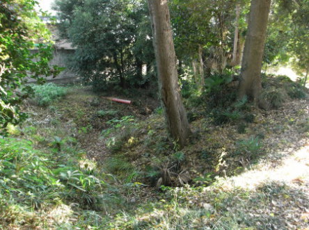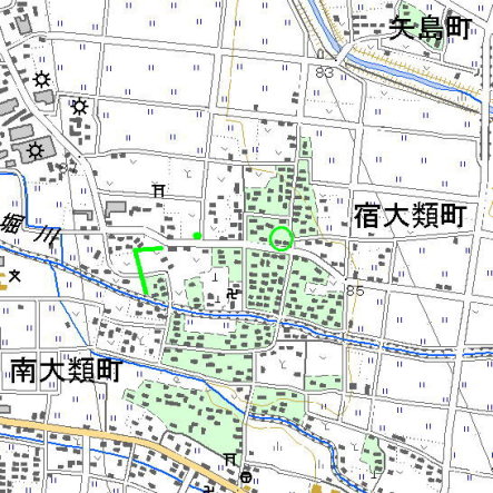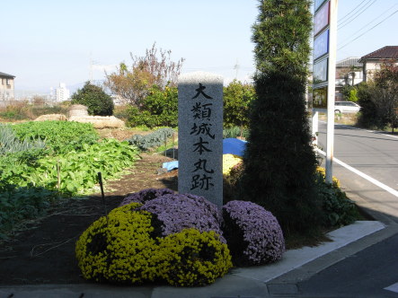 <沿革> 永禄九年(1566)に箕輪城が落城した後、武田氏に属した和田業繁によって居城和田城の 支城として築かれたと考えられている。天正三年(1575)の長篠の戦いで業繁が戦死すると、 武田重臣跡部勝資の子で娘婿の信業が跡を継いだ。信業は、同十年(1582)の武田氏滅亡 後は北条氏に従ったが、同十八年(1590)の小田原の役で北条氏も滅ぶと、没落して浪人と なった。大類城もこのときに廃城となったものと推測される。 <手記> 大類城は、一貫堀川を南端とし、宿大類町公民館を東端、熊野神社を北西端とする規模の 大きな城です。喰い違い虎口をもつ方形の本丸を中心に、いくつもの曲輪が輪郭式状に取り 巻く構造をしていて、曲輪間は水濠で仕切られ、それぞれの曲輪は半ば独立していました。 現在、本丸は宿大類町の中心として開発され、さらに幹線道路が貫通していて遺構は完全 に消滅しています。ただ、交差点の角に本丸跡の石碑が立てられており(上の地図の真ん中 の小点)、これだけでも周辺の城跡よりずっとマシかなと感じました。 本丸南東の慈眼寺と本丸北東の熊野神社も城域に含まれていますが、熊野神社裏手には 土塁跡と思しき土盛りがあるものの、慈眼寺には遺構らしきものは残っていません。 遺構が最も良好に残っているのは、本丸南東の曲輪周辺です。熊野神社の門前から南に 向かって、鉤字状に堀と土塁の跡がはっきり見て取れます(地図左手の太線)。また、慈眼寺 北西の田も堀跡と思われ、隣接して土塁跡と見受けられる祠があります。 城の東に位置する公民館(地図の右手の小円)は、判形と呼ばれる別郭跡で、ここに大類城 と周辺の城館に関する説明板があります。また、大類城のすぐ南には、児玉党の一派大類氏 累代の居館である大類館がありました。両城が同時期に存在していたかについては、詳らか ではありません。 |
