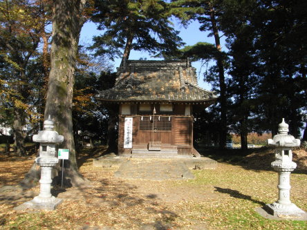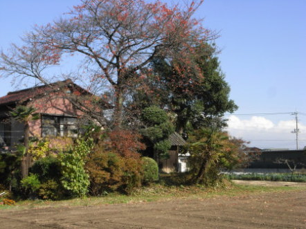 | 慈眼寺北西の堀跡と思しき水田と、 土塁跡と思しき祠。 |