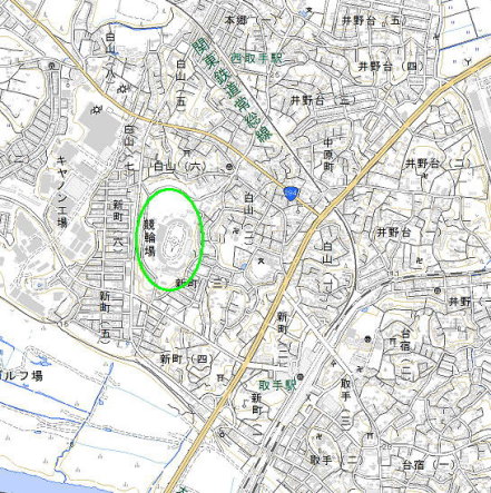 <沿革> 大鹿氏の居城とされる。大鹿氏は鎌倉時代から当地にあったとされるが、その出自や動向 など詳しいことは分かっていない。 永禄年間(1558〜70)、大鹿太郎左衛門が城主のころ、小文間城主一色宮内少輔政良に 攻め滅ぼされたとされる。蔵重一彦『伝説の花輪城再発見』によれば、大鹿落城は永禄四年 (1561)のこととされるが、典拠は不明である。 <手記> 現在競輪場となっている丘陵一帯が、大鹿城址とされています。ただし、建設前まで遺構 が残っていたとされる本丸は、競輪場南西麓の十字路付近にフック状に突出していたとされ、 今では丘ごと消滅しているようです。競輪場北側の駐車場付近が大手とされ、それなりに 広い城域を有していたことが拝察されますが、いずれにせよ今では痕跡どころか雰囲気を 感じるだけでも困難です。 この日は私の訪城ではたいへん珍しく、激しい降雨に見舞われたため、写真も踏査もそこ そこに、ご一緒していた城仲間たちと雨宿りできる休息場所を探しに丘を下りたのでした。 ちなみに、大鹿の読みが「おおしか」で良いのかどうか、裏はとれていません^^; |