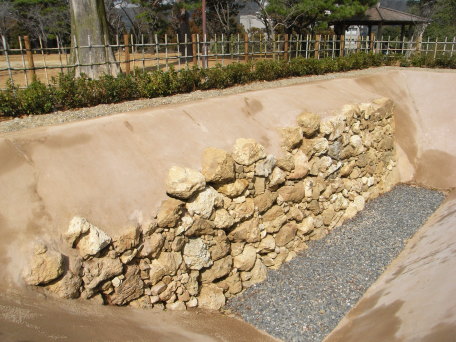 | 高知城三の丸で発掘された、長宗我部氏時代の石垣。 | |