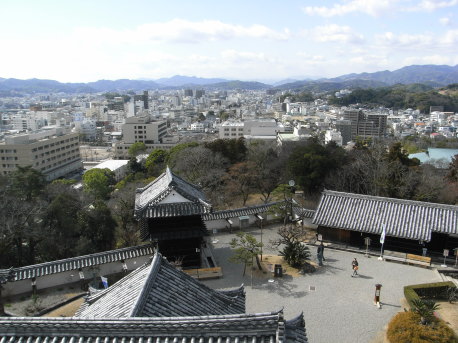 | 高知城天守から、長宗我部氏時代に居館が営まれていた 西側を望む。 |