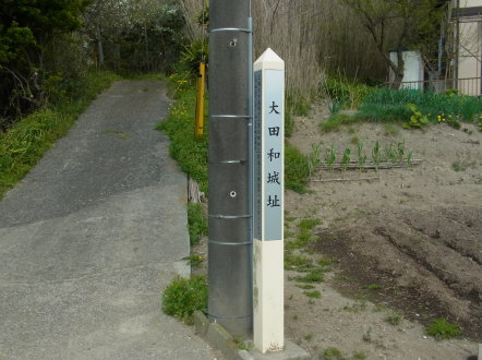 <沿革> 三浦義明の子三郎義久によって平安末期ないし鎌倉初期に築かれ、義久は大多和氏 を称した。 大多和氏は、宝治元年(1247)の宝治合戦で三浦宗家が没落した後も一定の影響力 を保持していたようで、元弘三年(1333)の分倍河原の戦いにおいて大多和平六左衛門 義勝なる人物が、相模の武士団を率いて新田義貞軍に参入したことが『太平記』の記述 にみられる。同戦いでは、義勝の献策により新田軍が奇襲で大勝を得たとされる。ただ、 大田和城がこのときまで存続していたのかは定かでない。また、三浦氏や大多和氏の 系図に、義勝の名はみられない。大多和氏のその後についても詳らかでない。 <手記> 現在の地名表記は太田和ですが、城名や名字については「大田和」ないし「大多和」と 書くのが一般的なようです。城の前を流れている川は小田和川といいます。 大田和城は、この小田和川沿いの半独立小丘にあったとされています。丘の東半分は 福祉介護施設となっています。残る西半分も、熱帯の森のようになっており、登る道とて なく、踏査は困難と思われます。一応、北西麓に標柱と、施設の入口に石碑があります。 『日本城郭大系』には、この山の別称を「ヤジロ山」とし、「矢城山」の字を充てています。 他方、標柱には「ヤジロー山」とあり、どちらかというと「ヤジロー」と称した人物との関連 を指摘しているようにも見えます。 いずれにせよ、第一義的には小田和川を遡って峠を越えた先にある、三浦氏の本拠地 衣笠城を守るための支城であったことは間違いないでしょう |