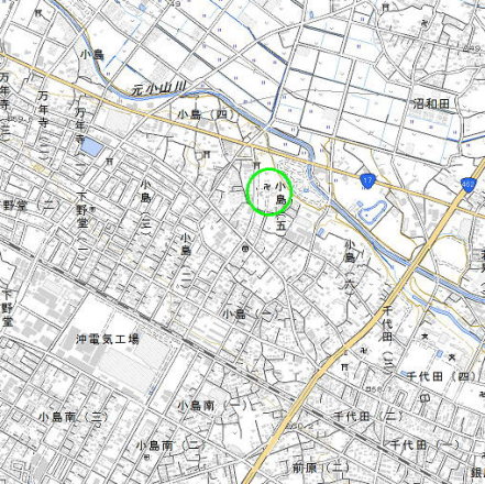 <沿革> 武蔵七党の1つ丹党の庶流小島氏の居館址と伝わる。小島氏は、秩父(丹)基房の 四男重光にはじまるとされる。その後の小島氏の動向については定かでないが、重光 の6代子孫の宗光・末光兄弟の名までは伝わっている。 戦国時代末期には、北条氏邦の家臣吉田和泉守政重が小嶋郷に所領を得ていた。 政重の子新左衛門真重が氏邦の重臣猪俣邦憲から父の所領を安堵する旨の書状を 受けている。吉田氏の居所について、小島氏館を充てる説もあるが、確証はない。また、 真重は新たに黛郷に所領を加増されている。黛郷は、現在の上里町金久保にあったと され、このことから吉田氏を金窪城主とみる向きもある。ただし、一般には北条時代の 金窪城主は斎藤氏であるとされる。 天正十八年(1590)の小田原の役で北条氏が滅亡すると、吉田氏は越後上杉氏に 召し抱えられたとされる。 <手記> 館跡は、現在長松寺の境内となっており、西辺に土塁と堀跡が残っています。土塁 はL字型のものが縦に2本並んでおり、このことから南北に最低2つの曲輪が並んで いたものと推測されます。かつては北辺と南辺の土塁の一部も残存していたようです が、今では失われているようです。元小山川河岸の東辺には元から土塁がなかったと いうことから、崖端の居館であったものと思われます。 城主など、館の歴史については確証がないため推測に頼らざるを得ませんが、現下 の遺構から拝察するに、小島氏の時代だけには留まらないように感じられます。 |