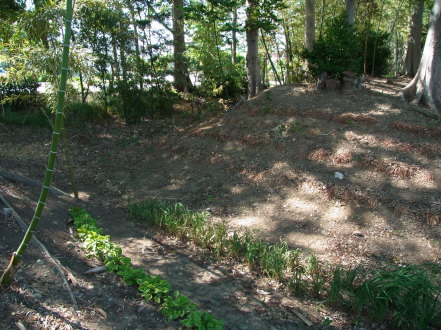 | 北側の曲輪南東隅の堀と土塁。 | |