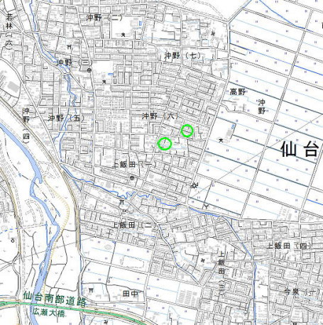 <沿革> 沖野地区の南東端附近に、かつて要害の小字があったことが、古地図に記載されている。 字要害の南西には字横堀もあり、城館跡の可能性が考えられるが、証拠はない。 <手記> 沖野東小学校の西側に字要害と字横堀があったとされています。どちらか1つだけだったら 怪しいところですが、城郭関連地名が2つ並んでいることから、城館が存在した可能性は幾分 高いものと思われます。史料にもみられず、取り上げている文献もないようですので、ここでは 一応「沖野南館」と仮称することにします。 周辺は住宅街となっており、遺構らしきものは認められません。地名に比して要害地形でも なく、推定の真偽を判断するのは困難です。存在したとすれば、北にある沖野城に付帯する ものと考えられます。 字要害の西側には館南1号公園があります。ひょっとしてとも思いましたが、これはむしろ 沖野城周辺の小字が「館」であることによるものでしょう。 |