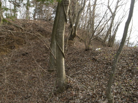 | 虎口下の武者溜りから主郭東の堀切を望む。 | |
