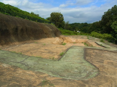 <沿革> 小山田桜台の開発にともなう発掘調査で発見された、武士の館跡である。天目茶碗も 検出されたことから、平安時代末期から室町時代中期ごろまでのものと推定されている。 周辺には「牧畠」や「窄場」といった小字がみられることから、平安時代末期に小山田城 を築き、周辺を開拓した小山田氏の館ではないかと考えられている。 しかし、小山田氏の嫡流は建武三年(1336)の湊川の戦いにおける小山田高家の戦死 によって途絶えたものとみられており、その後文明八年(1476)の長尾景春の乱までは 上杉頼重の庶子頼成にはじまる小山田上杉家(千秋上杉家)が小山田荘にあったものと 考えられている。 なお、東京都史跡としての登録名は「小山田一号遺跡」であるが、遺跡としての呼称は 「小山田遺跡群No.1遺跡」である。 <手記> 小山田桜台の北西端に位置するこぶし公園の一角に、小山田一号遺跡があります。 鶴見川最源流の沢の1つに面した谷戸の斜面上に位置し、その一部が地表復元されて います。その他石碑と説明板もしっかり設置されており、見つけにくいという1点を除けば、 よく整備された史跡といえます。 ただ、説明板を読んでも、地表復元された箇所を歩いてみても、どのような館であった のか今ひとつピンときません。おそらく、先史専門の考古学の方が担当なさったためだと 思うのですが、「中世武士の居館の臨場感が再現されています」と胸を張って書かれて いるわりには、残念ながら城跡マニアの私には伝わってきませんでした。 個人的な直感としては、武士の「居館」というよりは、開発・経営にともなう「施設」の跡 ではないかと考えています。先述のとおり水源地であり、有数の馬産地である横山丘陵 の一端であり、また南に下れば境川沿いの矢部や淵野辺、北に向かえばやはりいくつか の館跡が発見されている別所や堀之内に至ることから、通商路でもあったのではないか と推測されます。 このほかにも、桜台には中世の建物跡や井戸跡、溝などが検出されている遺跡が2つ ほどあり、小山田荘を開拓するうえで、谷戸ごとに必要な施設が建てられていたのでは ないかと思われます。 |