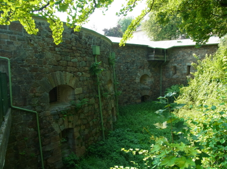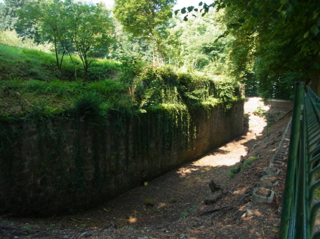 <沿革> 1809年にナポレオンがリンツを占領すると、フランス軍はペストリングベルクの山上に木造の 陣城を構築した。このとき、山を覆っていた樹木を伐採して材木としたことにより、山頂一帯から 初めて周囲を見渡せるようになったといわれる。 ウィーン会議の後、ナポレオン戦争に参加していたマクシミリアン・ヨーゼフ・フォン・エスター ライヒ=エステは特定の都市を防衛する環状要塞の構築の必要性を唱えた。リンツの防御塔線 (Turmlinie)は1831年から建造が始まり、マクシミリアンが私財を投じて普請を急がせたため、 1833年までに大部分が完成したが、実際に軍に引き渡されたのは1838年であった。 しかし、わずか20年後の1858年には、軍事技術の進歩によって要塞群はすでに時代遅れと なってしまい、放棄されて朽ちていった。1860年代には、ほとんどの防御塔が売却されて解体 されたり、他の用途に転用されたとされる。 <手記> ペストリングベルクはリンツ市街の北西に地位する、比高250mほどのゆったりとした山です。 麓から山頂までペストリング鉄道という登山軌道が延びており、なんと市内の路面電車が直接 乗り入れています。自分はこの面白い登山鉄道に乗るという目的だけで、ペストリングベルクを 目指しました。 しかしながら、いざ到着してみると、駅やその周囲になにやら要塞のような石壁や空堀などが 目に付くではありませんか。とはいえ情報もなかったので、「まさかなぁ…いやひょっとして…」と 思いながら普通の観光をして下山しました。後で調べてみるとやはりビンゴで、計6つの城塔や 稜堡から成っていたそうです。そうと知っていれば、もっと時間をかけてじっくり巡ったのですが、 残念ながらアフターフェルティバルでした^^; ちなみにペストリングベルク山頂には巡礼教会が建ち、リンツ一帯を見渡す眺望スポットして、 一般の観光客も多く訪れています。 |