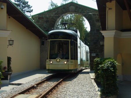 | ペストリングベルク鉄道。 奥のゲートは城塔の壁をくり抜いたもの。 |