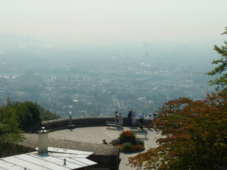 | 山上からの眺望。 この日はだいぶけぶっていました^^; |