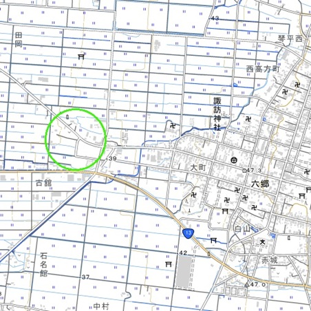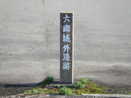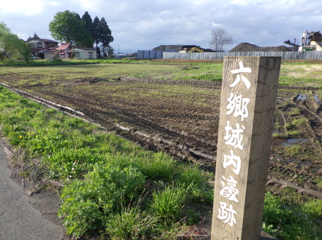 <沿革> 在地領主・六郷道行によって、永禄二年(1559)に築かれたとされる。六郷氏は鎌倉幕府 政所執事・二階堂行忠の後裔を称し、鎌倉時代ないし南北朝時代に仙北郡へ下向したもの と推測されている。道行の祖父または曽祖父に、将軍・足利義晴から偏諱を受けた二階堂 晴泰がいるが、道行以前の本拠地については定かでない。 六郷城を築いた道行が、初めて六郷氏を称したとされる。道行の名は小野寺氏の偏諱と 考えられているが、六郷氏は小野寺氏と戸沢氏の間を巧みに泳ぎ渡り、一定の自立性を 保持し続けた。天正十九年(1591)の奥州仕置に際し、道行の子・政乗は4500石余を安堵 されている。 関ヶ原の戦いにおいて東軍に属した政乗は、戦後の慶長七年(1602)に常陸府中1万石 へ加増・転封となった。代わって、羽後には佐竹義宣が入り、その父・義重が仙北の押さえ として六郷城に居を構えた。翌八年(1603)には六郷城が攻撃されるなど、旧勢力遺臣や 領民らの一揆・強訴が相次いだが、義重はこれらに対処しつつ、城下の整備にも努めたと される。 慶長十七年(1612)に義重が死去すると、六郷城は廃城となった。 <手記> 六郷城は六郷市街地の西方外れに突き出た、浮島のような微高地に築かれています。 現在はサテライト六郷などが建ち、旧状をほとんど留めていませんが、国土地理院地図の 年代別航空写真を見ると、北西側の本丸と南東側の二の丸が確認できます。 本丸跡には田岡神社が建ち、本殿裏には通庵佐竹公(義重のこと)館址碑があります。 また、碑の背後や鳥居の南側には僅かながら堀の痕跡も残っていました。そのほか、城内 には二の丸や内濠、外濠といった標柱が建っていますが、現況からかつての縄張りを窺う のは困難です。 個人的には、戦国末に有力国人として突如現れ、大名として明治まで存続した六郷氏の 存在に興味を覚えます。もちろん、道行や政乗の代に急に成長したわけではないでしょう が、小野寺氏や戸沢氏、安東氏に囲まれつつも、いずれにも飲み込まれることなく勢力を 保ち続けた外交力には、目を見張るものがあると言ってよいでしょう。 |