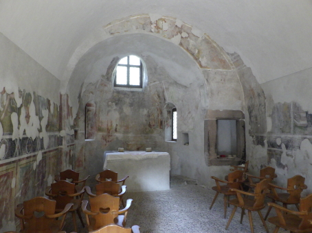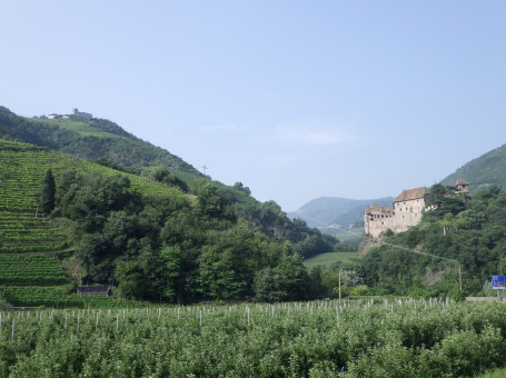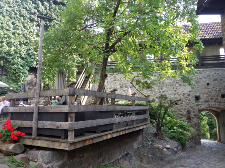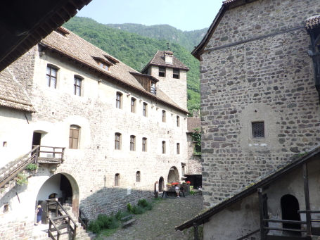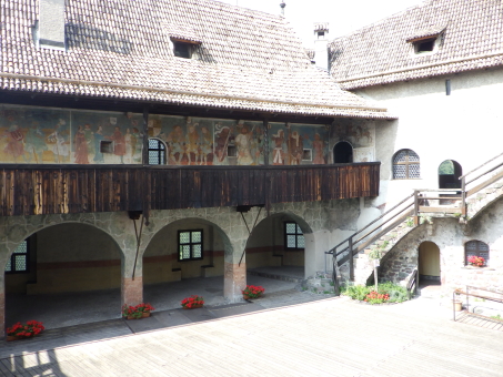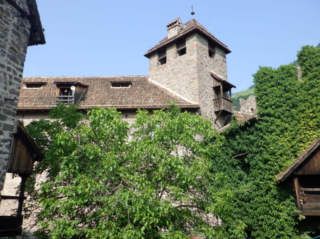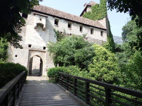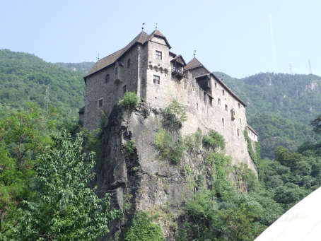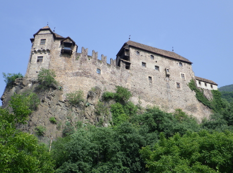<沿革> 1237年に、フリードリヒおよびベーラル・フォン・ヴァンゲン兄弟によって築かれた。2人はトレント 司教領主アルデリヒ・フォン・カステルカンポの側近で、13世紀初頭にタルヴェーラ川を北へ遡った ヴァンゲン=ベッレルモント城の城主となったが、奥地にあり不便であったため、ロンコロ城北麓の リート城を購入して移り住んでいた。当時の史料には、城地となった岩山について「ルンケンシュ タイン(Runchenstayn)」と記されている。1274年、城はチロル伯マインハルト2世の軍に攻囲され、 落城した。 1385年、フランツおよびニクラウス・ヴィントラー兄弟がルンケルシュタイン城を取得し、大規模な 改修とフラスコがによる装飾を施した。とくにニクラウスは、ボルツァーノ市政において重要な地位 を占める裕福な市民であった。1490年、城はチロル伯を兼ねる神聖ローマ皇帝マクシミリアン1世 の手に帰した。 1520年、火薬の爆発により北側の建物が大きく損壊した。1531年に環状城壁が再建されたが、 1538年にはトレント司教領主の家士であったフォン・リヒテンシュタイン=カステルコルン家が城を 手に入れた。1574年にも、同家によってルネッサンス様式への改修が行われている。 1672年、今度は火災によって、東館が焼け落ちた。城はもはや戦略的な重要性を失い、18世紀 には再びトレント司教領主の所有となった。1880年、ハプスブルク=ロートリンゲン家のトスカーナ 大公ヨハン・ザルヴァトールが城を購入し、オーストリア皇帝フランツ・ヨーゼフ1世に寄贈した。 皇帝はルンケルシュタイン城に関心を示し、1884~88年にかけてウィーンの建築家フリードリヒ・ フォン・シュミットの設計に基づき、大規模な改修工事を実施した。1893年、城はボルツァーノ市に 下賜され、地域を代表する観光スポットとして今日まで親しまれている。 <手記> ボルツァーノ北方の岩山に築かれた山城です。ロンコロ城とはイタリア語読みですが、南チロル はドイツ語優勢の地域なので、会話や現地説明などではドイツ語読みのルンケルシュタイン城も よく通じます。というか、そちらの方がカッコいいですね笑 最終的には19世紀の改修を受けていますが、同時代にメルヘン化された他の諸城とは異なり、 ロマネスク様式のままで保存・修復されているのは嬉しいポイントでしょう。とくに西館には14世紀 のフレスコ画が一部残り、中世の雰囲気を今に伝えています。また2階には、壁にめり込むように トイレがあり、よもやと思って建物の外へ出てみると、そこだけ出窓のように張り出していました。 中世の城では落ちた排泄物を集める係の使用人もいたと話には聞いていましたが、実際に目に してみると「おおぉ…」と言葉に詰まってしまいます。この城の場合は、真下が崖なので掃除係は 不要だったとは思いますが^^; 北側の「夏宮」は、上述の火薬の爆発後に建て直されたものです。東館も火災で被害を受けて おり、城塔を含めておそらく19世紀の建築でしょう。そのほか、城内には井戸や礼拝堂といった 見どころもあります。カフェも併設されているので、城を内から眺めながらビールで乾杯するのも おすすめです。 |