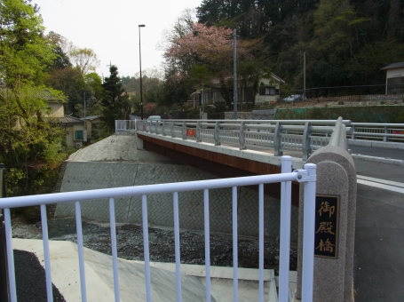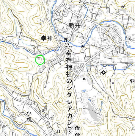 <沿革> 『新編武蔵国風土記稿』には「屋敷蹟」、『武蔵名勝図会』には「御殿跡」として記載がある。 両書とも、城主については不明としているが、『図会』では幸神に住していたとする伝承のある 平山左衛門尉綱景との関連を示唆している。綱景は、檜原城主平山氏重の弟とされ、天正 十八年(1590)の小田原の役に際して、八王子城に籠って討ち死にしたとされる。 『日本城郭大系』では、土豪幸神氏の存在の可能性を唱えているが、裏付ける証拠はなく、 推測の域を出ていない。 <手記> 幸神屋敷は、平井川の支脈勝峰川を少々遡った地点の、緩やかな舌状の峰先にあったと されています。現在は民家となっており、遺構の有無は外縁観察からはうかがえません。 勝峰川の合流地点の少し西で平井川に架かる橋は御殿橋と名付けられています。『図会』 にある「御殿跡」は、幸神神社の西北とされ、おそらくこの御殿橋を渡った南側付近を指すと 思われます。この場合、『記稿』の「屋敷」と『図会』の「御殿」は別のものである可能性が生じ ます。『図会』の「御殿跡」は、勝峰川と平井川の合流点に位置し、要害地形をなしています。 現在は、こちらも民家や新道となっていて、遺構の有無は不明です。御殿橋の北側対岸には、 新井屋敷があったとされています。 |