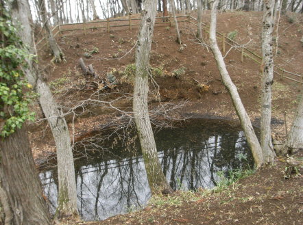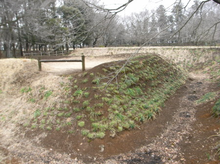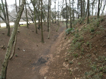 | 二曲輪南の二重堀。奥はかつて蓮沼でした。 | |