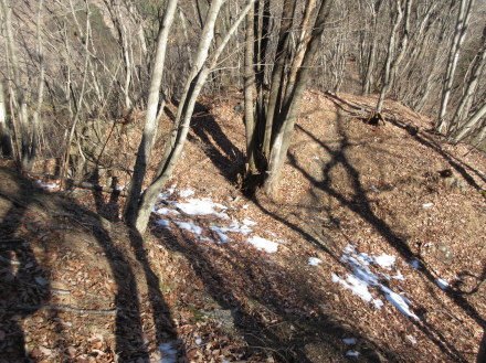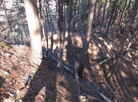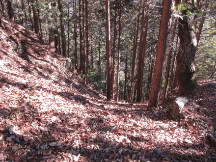 <沿革> 天正年間(1573〜90)の初めに、佐野氏家臣小野高吉によって築かれたとされる。 同十二年(1584)、高吉とその兄弟は隣領の足利長尾顕長の家臣小曾根筑前守に よって謀殺され、城も小曾根氏に奪われたとされる(『佐野記』)。 翌天正十三年(1585)、佐野宗綱は須花峠を越えて顕長を討とうとしたが、反対に 討ち取られた。小野城はこの前後に廃されたとされるが、詳細は不明である。 <手記> 小野城は、彦間川上流の小盆地を見渡す要谷山(ようがいさん)に築かれています。 佐野市のHPでは要谷山城とされ、また根小屋城の別称もあるようですが、要谷山も 根小屋もそれ自体が城館跡を示すものなので、当時の呼び名とは思えません。他方 で小野城というのも小野氏の持ち城という意味でしょうから、実際のところ正式名称に ついては定かでありません。 城山の中腹から西麓にかけて根小屋森林公園という保存林になっていて、駐車場 も完備されています。公園の入り口脇にある根本山神社が館跡とされ、低い石垣が 巡っていますが、遺構かどうかは判断に窮します。 山頂までは登山道が整備されているので、迷うことはないでしょう。途中の峰先に 小さな祠があり、祠の大きさに比べて立派な石垣で囲まれています。さすがにこの 石垣は後世のものと思いますが、その付け根には堀切跡のような人工の切れ込み があり、あるいは出丸が置かれていたのかもしれません。 主城域は、山頂の主郭の東西南北に腰郭を付属させ、峰続きの北を堀切で断つと いう、比較的シンプルなものです。ただ、随所に石積みが残存しているのが特徴で、 天正年間の築城および廃城という歴史を裏付けているように感じられます。石積みは 直接曲輪形成に寄与していないような箇所が多く、唐沢山城と同程度に城山全体を を覆っていたとしても、あるいは土留めが主目的だったものと推測されます。 『日本城郭大系』では、小野城を須花峠と近沢峠を結ぶ交通の要衝としています。 ですが、少なくとも須花峠は城からやや遠く、変事に機敏に対応するのは難しい場所 にあります。他方で、城下の小盆地は彦間川の源流近くにもかかわらず穏やか且つ 面積があり、佐野氏の領内でも生産性の高い地域だったと拝察されます。そのため、 佐野領の背後を窺うと同時に多くの人員を養えるこの飛駒の盆地を押さえることは、 足利長尾氏が北条方に、そして佐野氏が佐竹・宇都宮方に属して対立していた間は とくに重要だったと考えられます。 佐野宗綱の戦死後、佐野家は内紛の後に北条氏康の子氏忠を養子に迎え、北条 陣営に加わります。これによって長尾氏と合戦におよぶ可能性は低くなり、小野城の 必要性もほとんどなくなったはずです。さらに言えば、佐野氏が北条一門に連なった ことで、小曾根氏に奪われていた小野城および飛駒盆地も返還され、このときに廃城 とされたとすると、ストーリーとしてすっきりするのかなと感じました。 |