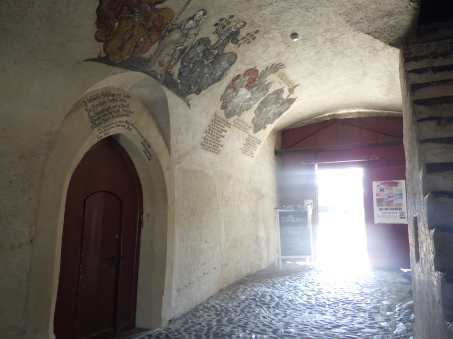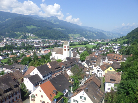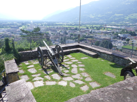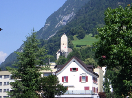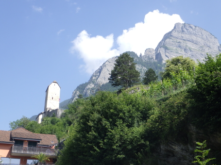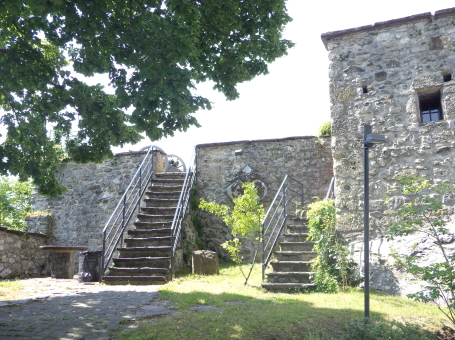 <沿革> 1200年ごろ、モーントフォルト伯フーゴー1世によって築かれたとみられている。しかし、 建築史上の調査からはそれ以前に石造の建物が既にあったと考えられており、フーゴー 1世の父テュービンゲン宮中伯フーゴー2世や、その妻の実家であるブレーゲンツ伯家の 前身となる城砦が存在していたとする説もある。 フーゴー1世の子ルドルフ1世とフーゴー2世の兄弟は所領を分割し、ライン左岸地域を 獲得した前者がヴェルデンベルク城を居城としてヴェルデンベルク家を興した。ルドルフの 妻クレメンティアはザルガンス伯夫人を称しており、ザルガンス城に居住した可能性が 考えられる。2人の子であるハルトマンとフーゴーの兄弟は、さらにヴェルデンベルク= ザルガンス家とヴェルデンベルク=ハイリゲンベルク家に分かれた。ヴェルデンベルク= ザルガンス伯ハルトマン1世となったハルトマンは、ザルガンス城を居城として拡張したと みられる。 ハルトマン1世の子ルドルフ2世の代にヴェルデンベルク=ザルガンス家は所領を大きく 拡大させたが、彼の子らは1342年に遺領を分割相続し、ルドルフ4世がザルガンス城を 取得してヴェルデンベルク=ザルガンス=ファーツ家を興した。ルドルフ4世の子ヨハン1世 はヴェルデンベルク=ハイリゲンベルク家との戦争に突入し、相次ぐ所領分割と同族間の 争いで財政的に困窮していった。これに付け込んだのがオーストリア公ハプスブルク家 で、ヨハン1世は1396年にザルガンスの城と街をオーストリア公レオポルト4世に抵当へ 差し出さざるを得なかった。 1405年、アッペンツェル戦争に際してザルガンス城は「越湖同盟(Bund ob dem See)」 軍に包囲された。陥落は免れたものの、城下町が徹底的に破壊されたとされる。戦後の 1406年、ハプスブルク家はザルガンスをトッゲンブルク伯フリードリヒ7世の抵当に入れた が、フリードリヒ7世が1436年に没すると、ハプスブルク家からヨハン1世の子ハインリヒ 2世に譲渡され、ヴェルデンベルク=ザルガンス=ファーツ家は旧領に復することができた。 古チューリッヒ戦争中の1445年と1446年、ザルガンス城は2度にわたってスイス盟約 同盟軍に包囲された。またも陥落は免れたものの、城内は荒廃が進んでいったようで、 1459年には宮殿の一部が崩落するなどしている。1483年、ゲオルク2世はザルガンス 伯領をスイス連邦に売却し、帝国アハト刑に処されて1504年に死去した。これにより、 ヴェルデンベルク=ザルガンス伯家は断絶した。 ザルガンス城はスイス連邦の行政府として、城(Burg)から宮殿(Schloss)へと改修 された。1798年にフランスの影響下でヘルヴェティア共和国が建国されるまで、2年交代 で延べ181人の執政官が派遣されている。 1811年にザルガンスの町が大火に見舞われると、城は学校として利用され、1834年に 競売にかけられた。購入者のヨハン・ゲオルク・フォン・トッゲンブルクはフランスから叙爵 を受けた人物で、以後トッゲンブルク=ザルガンス伯を称している。しかし、ザルガンス伯 についてはあくまで自称であり、かつてこの地域に影響力を有していたトッゲンブルク伯 とも無関係である。 ヨハン・ゲオルクの目的は歴史あるトッゲンブルク家とザルガンス家の名跡を継承した と喧伝することにあったとみられ、城館自体には関心を示さず、ザルガンス城はそのまま 放置された。1860年までには城の「後館(Hinteres Schloss)」が取り壊され、1899年に ザルガンス市が荒廃した城館を購入した。翌年から大規模な修復が実施され、博物館 およびレストランとして今日まで運営されている。 <手記> ザルガンスはリヒテンシュタイン公国の南西端に接する小都市で、今でもリューリッヒ、 クール、ボーデン湖の3方面への鉄道や高速道路が交わる要地です。ザルガンス城は 舌状に突き出た峰の上に築かれており、背後には「山」の字の形をしたゴンツェン山が 高々と聳えています。ザルガンス駅から徒歩15分くらいなのですが、荷物を駅のコイン ロッカーに預けたところキャッシュレスのロッカーの使い方が分からず、閉めた扉を一度 開ける羽目に。スイスは物価が高いことで有名ですが、円安が追い打ちをかけて料金が 1000円を超えており、逡巡した挙句バックパックの全荷物を背負って城山を登ることに しました^^; 上述のとおり、ザルガンス城は放置・改築・修復を繰り返しており、主塔や宮殿の建物 にはツギハギが目につきます。中庭(ブルクホーフ)までは無料で入れますが、建物内は 有料です。重い荷物を背負っているうえにそこそこのお値段なので、こちらも遠慮せざる を得ませんでした。取り壊された後館跡にはレプリカの大砲が置かれ、ライン川沿いの 眺望が開けています。 ヴェルデンベルク=ザルガンス家の栄光と凋落の舞台として、荷物を気にせずもう少し ゆっくりと見学したかったなぁと、いささか心残りの訪城となりました。 |