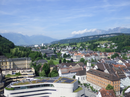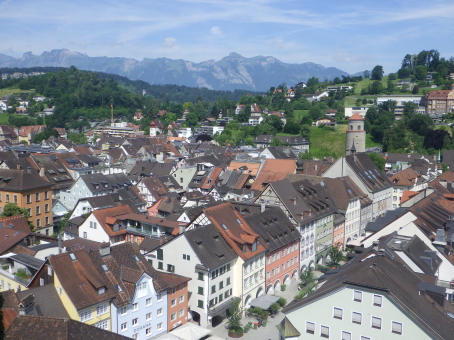 | 主塔最上階からフェルトキルヒ旧市街を見下ろす。 左手奥に小さくトストナー城が見えます。 |