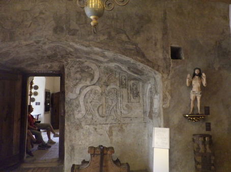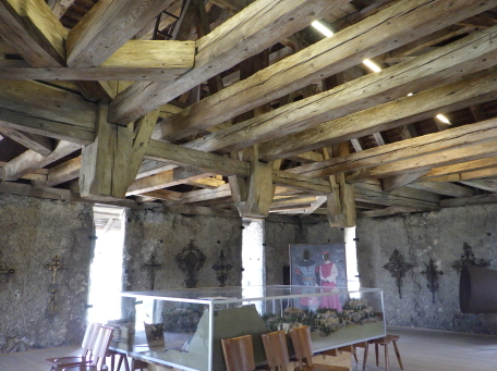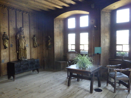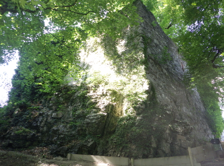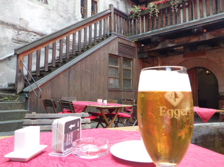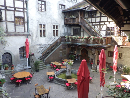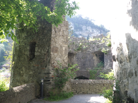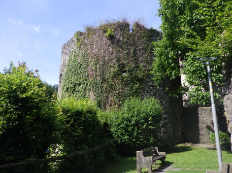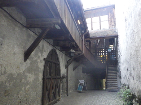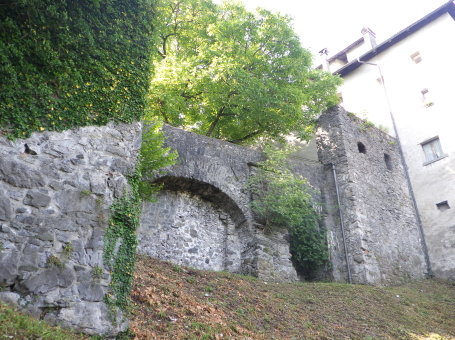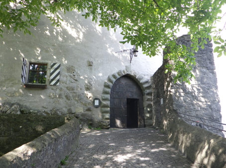 <沿革> 1200年ごろ、モーントフォルト伯フーゴー1世によって築かれた。モーントフォルト家はヴァイラー のアルトモーントフォルト城を本貫とする一族で、フーゴー1世は新たにモーントフォルト=フェルト キルヒ家を興して分家した。 1270年、フェルトキルヒの城と街は後にドイツ王となるルドルフ・フォン・ハプスブルクと、同族の モーントフォルト=ヴェルデンベルク家の軍勢に囲まれたが、陥落を免れている。その後も多くの 分家を生んだモーントフォルト家内での相続争いが続いたが、1375年にルドルフ5世がフェルト キルヒの支配権をオーストリア大公レオポルト3世に売却した。1390年にルドルフ5世が没すると モーントフォルト=ヴェルデンベルク家は断絶し、城にもハプスブルク家の代官が送り込まれたと みられる。 1405年、アッペンツェル市とザンクト・ガレン修道院の争いからアッペンツェル戦争が勃発する と、フェルトキルヒ市はアッペンツェル市などが中心となって結成された「越湖同盟(Bund ob dem See)」に加わった。同年秋、同盟軍は修道院を支援するハプスブルク家のシャッテンブルク城を 攻撃し、18週間にもおよぶ包囲戦の末、わずか38名で守備していた城将ハインリヒ・ヴァルター・ フォン・ラームシュヴァークは降伏した。城は焼き払われたが、トッゲンブルク伯によってまもなく 再建されている。 1416年にはチューリッヒとコンスタンツの兵に囲まれ、15日の攻防戦の後に開城した。城砦は 再び大きく破壊されたが、翌1417年にはフリードリヒ・フォン・トッゲンブルクが皇帝ジギスムント から城を抵当として取得し、居城として大きく改修した。1436年にフリードリヒが死去すると、城は 再度ハプスブルク家の管轄下となり、城代ハンス・フォン・ケーニヒスエッグのもとで防備が拡充 された。17世紀に入ると居住性を重視した改修へシフトし、ハプスブルク家の宿泊所としても利用 されたといわれる。 三十年戦争さなかの1647年、シャッテンブルク城とフェルトキルヒの街はスウェーデン軍に対し 無血開城した。このとき、城と街を破壊と略奪から守るため、多額の保証金が支払われたといわ れる。このころには、シャッテンブルク城は戦略的な意義を失っていた。 1778年からは監獄として使われたが、1794年までは城代フランツ・フィリップ・グッガー・フォン・ シュタウダッハが城内に居住していた。1825年にはフェルトキルヒ市に下げ渡され、兵舎ついで 救貧院として使用された。 1912年に郷土博物館が開設され、第二次世界大戦を挟んで今日まで続いている。 <手記> フェルトキルヒ旧市街を見下ろす丘上に築かれた平山城です。城名は直訳すれば「影の城」と なりますが、Schattenとは守りを意味する「schaten」という語に由来するそうです。ただ、今日の 辞書には載っていないので、古語なのか方言なのかは不明です。 細長い岩山いっぱいに殿舎が建てられ、城内は博物館となっています。城そのものの歴史と いうより、地域全体の資料や美術品を集めているようで、部屋によっては所狭しと所蔵品が並べ られていました。 建物群の北東付け根側には堀切がありますが、今では石橋で埋められて防御施設としての用 は成さなくなっています。もし近世の改修によるものとすれば、作られた時点でもはや城塞として 使用する予定はなかったことになるでしょう。他方で堀切の向こうには馬出しのような小区画が あり、薄い城壁で囲まれています。ただ、こちらも防御を目的とした感じではなく、おそらくは近世 以降に単なる玄関として設けられたのでしょう。中近世の城砦遺構としては、堀切に面した円形 の城塔跡が見どころといえます。 中庭はレストランとなっていて、なんでも巨大なシュニッツェルが名物と聞いて試してみました。 ただ、たしかに大きいには大きいのですが、このくらいのサイズならウィーンに行けば珍しくない かなといった感じです。店員の態度も地方都市とて良いとはいえずお値段も割高で、残念ながら あまり満足感の高いメニューとはいえないように思いました。 |
