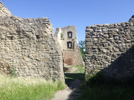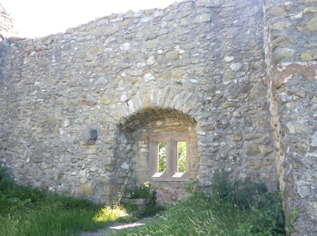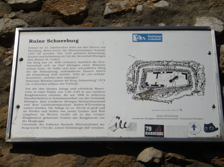 <沿革> 1312年に、フリードリヒ・フォン・ホルンベルクの持ち城として初めて史料に登場する。南東10km ほどの山中にあるヴィルデ・シュネーブルク城について1302年に「新しくて険しいシュネーブルク」 と記されていることから、13世紀後半に築かれたと推測されている。築城主もホルンベルク家で あったは定かでなく、後代には「シュネーヴェスベルク(Schnewesberg)」という表記もみられること から、13世紀前葉にフライブルクの有力者として勃興したシュネブリン家(Schnewlin)との関連も 考えられている。 1349年、フリードリヒの息子ないし甥のヴェルナーが城と付属の農場をザンクト・ガレン修道院に 寄贈し、修道院は改めてヴェルナーに城と麓のエブリンゲンを封地として返還した。しかし1387年、 ヴェルナーの妹のベアトリクスとその息子たちは、200グルデンと引き換えに城と所領の請求権を 放棄した。1426年にコンラート・フォン・ホルンベルクが相続権を主張すると、当時の抵当権者と みられるコンラート・ディートリヒ・フォン・ラートザムハウゼンは質請けとして1200グルデンを要求 した。これはコンラートには支払い不可能な額であったようだが、彼はコンラート・ディートリヒの姪 ベニグノーザと「意を決して」結婚し、シュネーブルク城とエブリンゲンを獲得した。 コンラートは山上の不便を厭い、山麓のエブリンゲンに新たな城館を建造すべく用地の取得を 進めた。コンラートが1457年ないし1458年に没すると、ベニグノーザはハンス・フォン・エンプスと 再婚したが、修道院はコンラートの親戚であるアントン・フォン・ホルンベルクを領主に封じたため、 ハンスとアントンの間で法廷闘争に発展した。1460年にエンプス家が勝利したが、アントンの子 マティアスは相続権を主張し続けた。1469年、ハンスは最終的にマルガレーテ・フォン・ホルン ベルクと和解に至り、マルガレーテはシュネーブルク城とエブリンゲンに関する権利を放棄した。 コンラートやハンスのころにはエブリンゲンに居館が移されていたとみられ、シュネーブルク城は 顧みられることなく朽ちていったと推測されている。1525年の農民戦争で破壊されたとする説も あるものの、根拠は乏しく事実とは考えられていない。1550年には「主なき城館」、1574年には 「廃墟となった城」と記述されている。 <手記> フライブルク市街の南西にゆったりとした双子の山があり、そのうち低い方から派生する尾根の ピークに、シュネーブルク城は築かれています。直訳すると「雪城」というロマンチックな城名です が、雪そのものとは無関係のようです。山頂ではなく尾根のピークに位置しているのは、おそらく 南側の鞍部を当時山越えの道が通っていたからでしょう。高い方のシェーンベルクにも、城館が あったといわれています。 城跡へは北麓のザンクト・ゲオルゲン駅から比高270mほどのハイキングで行けます。廃墟の ままで保存が図られており、直近では2000年に修復工事が行われたそうです。山容が緩やかと いうこともあってか縦横比1:3の綺麗な長方形をしていて、少なくとも3つの建物があったようで、 それぞれの城壁が部分的に残っています。主塔とみられる北西隅の城壁は2階と3階に、居住棟 とみられる南側の城壁は地階に窓が付いていて、後者は列車のように窓に垂直の石の椅子が 設けられているのが印象的でした。 登山道のある東辺を除く三方を囲む横堀も、いささか藪に埋もれていますが大きな見どころ。 またエブリンゲン方面の眺望も開けています。とはいえ周辺には農場が2軒あるだけで、たしかに ここに居住し続けるのは合理的とはいえないでしょう。 |