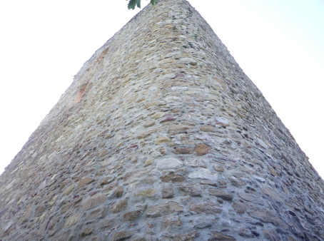 | 主塔の城壁を外側から見上げる。 | |