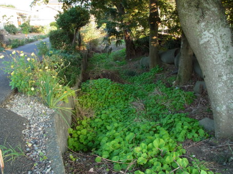 | 大手門脇の堀跡とされる溝。 | |