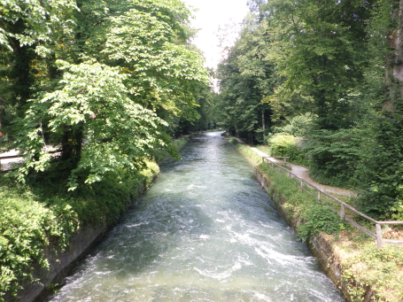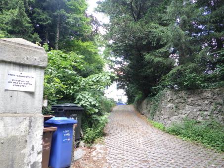 <沿革> 1268年に、ゼンドリング家の本貫の城としてその名が見える。ゼンドリング家の出自などは定かで ない。ミュンヘンにあるアンガー修道院の1288年の公文書中にもゼンドリング城についての記述が あるが、13世紀末には廃城となっていたとされる。 <手記> ゼンドリング城はミュンヘンの旧市街から南西へ6kmほどイーザル川を遡った、側流のレント運河 沿いにあります。イーザル川の河岸上に築かれた崖端の平城だったと思われ、北側には運河沿い へ下る切通しの道路が通じていますが、おそらく当時は地続きないしごく浅い谷戸だったものと推測 されます。 現在は比定地に薬物更生施設が建っており、当然ながら敷地内は部外者立ち入り禁止でした。 周辺に城跡を示すようなものもなく、日本の都市部の城跡と同じように、ひと通りぶらぶらして地形を 観察して、次へと向かいました。 |