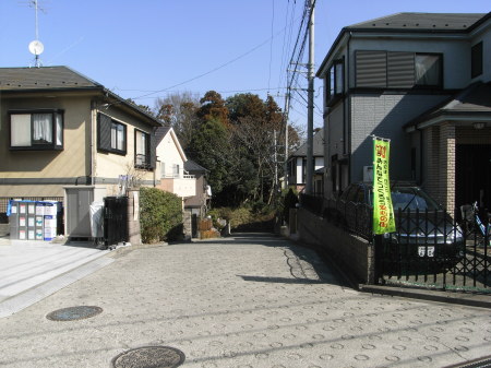 | 下鶴間城山を東方より望む。 手前は城山バス停。 |