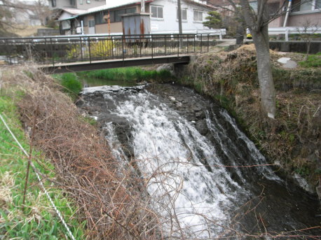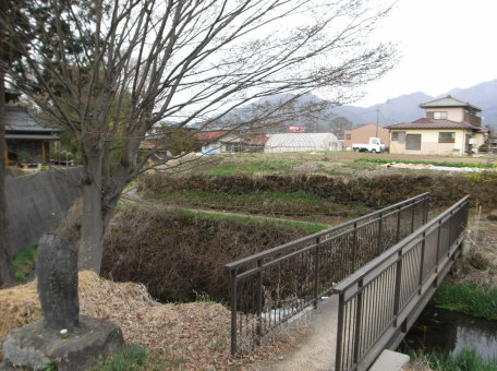 <沿革> 『中世城館調査報告書集成』に「ツケ塚の宮内左衛門」の館とある。「ツケ塚の宮内左衛門」に ついて詳細は不明である。あるいは、船津館主小林宮内丞道光や松山館主小林刑部左衛門と 関連があるかもしれない。 <手記> 下吉田館は、2つの谷川に挟まれた段丘上にあったとされています。現在では、周辺は畑地や 住宅地となっていて、遺構の確認は困難です。ちょうど雪解けの季節だったからか、堀の役割を 果たしていたであろう谷川は、水量豊富でしかもたいへんに勢いがありました。 |