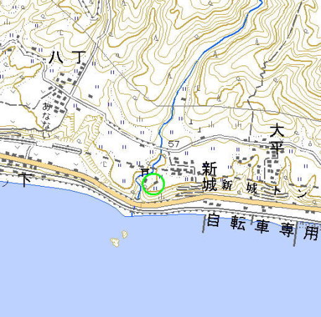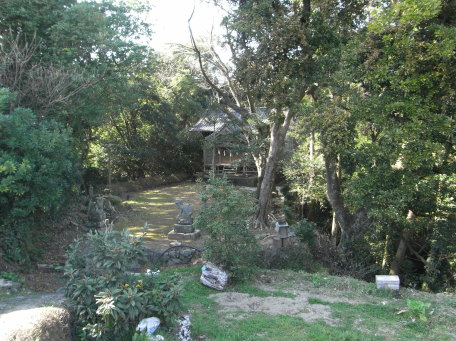 <沿革> 安芸氏の砦として、穴内城とともに築かれた。弘治元年(1555)に、安芸元盛が家臣寺尾内蔵助 を城主としたとされる。 永禄十二年(1569)に安芸国虎と長宗我部元親の間で緊張が高まると、国虎は重臣黒岩越前守 を穴内・新庄両城に配して備えた。同年に元親が軍を興すと、安芸勢は穴内の西、八流の丘上に陣 を張った。この八流の戦いに敗れた安芸勢は穴内・新庄両城に撤退したが、勢いに乗った長宗我部 軍を抑えることはできず、安芸城へ退却した。 安芸氏が滅亡すると、穴内・新庄両城には吉田左衛門佐孝俊が入った。廃城時期は不明である。 <手記> 新庄城は、土佐湾に流れ落ちる小沢によって削られた、台地の先に築かれています。現在、城跡 の先端に八幡社が鎮座しています。その他は畑となっていて、ビニールハウスが立ち並んでいます。 八幡社が立つ場所は、先端ではあるものの最高所ではありません。神社のすぐ東側が最高所です が、畑の所有者のものと思われる石塔がいくつか並んでいます。おそらくここが本丸で、神社の社地 を含めて東西に2つ・3つ副郭を備えたつくりだったものと考えられます。 いずれにしても穴内城同様、長宗我部氏の大軍を抑えられるような規模の城ではなかったと思われ ます。 |