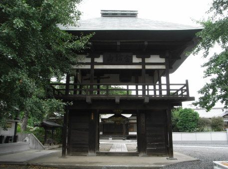 | 医王寺山門。2階は鐘楼になっているようです。 板石塔婆といい、いろいろと珍しい感じのお寺です。 |