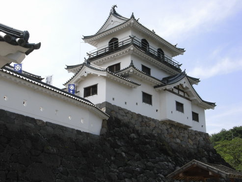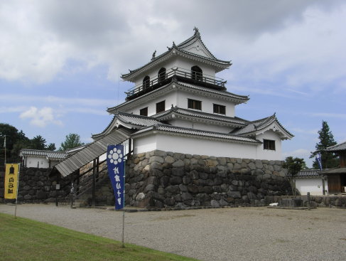 <沿革> 白石城の築城は、平安末期の刈田氏に遡るとされる。鎌倉時代以降、刈田氏の後裔を称する 白石氏が在城していた。白石氏の系図によれば、刈田氏は藤原経清の子経元にはじまり、奥州 藤原氏初代藤原清衡の兄弟にあたると伝わる。ただし、この系譜を裏付ける確証はない。 13世紀に入り、跡取りのいなかった白石長俊は伊達政依の子宗弘を養子とした。その後、白石 氏は伊達氏に従属し、伊達政宗が岩出山に転封すると、その配下であった白石宗実も水沢へと 移った。 代わって旧伊達支配地域に入った蒲生氏郷は、白石に重臣蒲生郷成を配し、城を修築した。 氏郷の死後、今度は上杉氏の領地となり、白石の守将には甘糟清長(景継)が任じられた。 関ヶ原の戦いで上杉景勝は西軍についたため、白石城は東軍の政宗により攻撃された。清長 は、このとき会津に出向いていたため、指揮は甥の登坂勝乃がとった。勝乃は、伊達勢の一斉 攻撃の前に降伏した。 戦後伊達領となった白石には、はじめ政宗の叔父石川昭光が入り、慶長七年(1602)十二月 には片倉小十郎景綱が入城した。片倉氏によって現在の縄張りに仕上げられたものとみられ、 以後明治維新にいたるまで片倉氏の支配が続いた。なお白石城は、一国一城令の特例として、 伊達藩で仙台城の他に唯一「城」として認められていた。 文政二年(1819)には、天守にあたる御三階櫓が焼失し、同六年(1823)に再建された。平成 七年(1995)に復興された天守は、このとき再建された晩年の姿をもとにしている。 <手記> 白石城は、掛川城などと並ぶ「本物志向」の「平成の築城ブーム」の火付け役の1つで、古図面 や発掘調査をもとに、当時の建築様式にしたがった木造復興天守です。 その姿は小ぶりでややずんぐりとしているものの、最上階の花頭窓と廻縁が特徴的で、とても 優美に感じられます。城の中では、親切なボランティアスタッフの方がいていろいろと案内してくれ ます。この日は残暑が厳しかったのですが、最上階は蔵王おろしが窓を吹き抜けて、とても涼しく 快適でした。 地方都市の御他聞に漏れず、白石市街の目抜き通りもなんとなく寂れてしまっていました。城 のほかには、残念ながら茅葺の屋根に雑草が生えてしまっている武家屋敷くらいしか見るところ がありません。せっかくなかなか見ごたえ十分な城として蘇ったので、これを生かして町おこしを してもらいたいものです。街中の一角にある製麺所で食べた名物の白石温麺は、とても美味しく おすすめです。 |